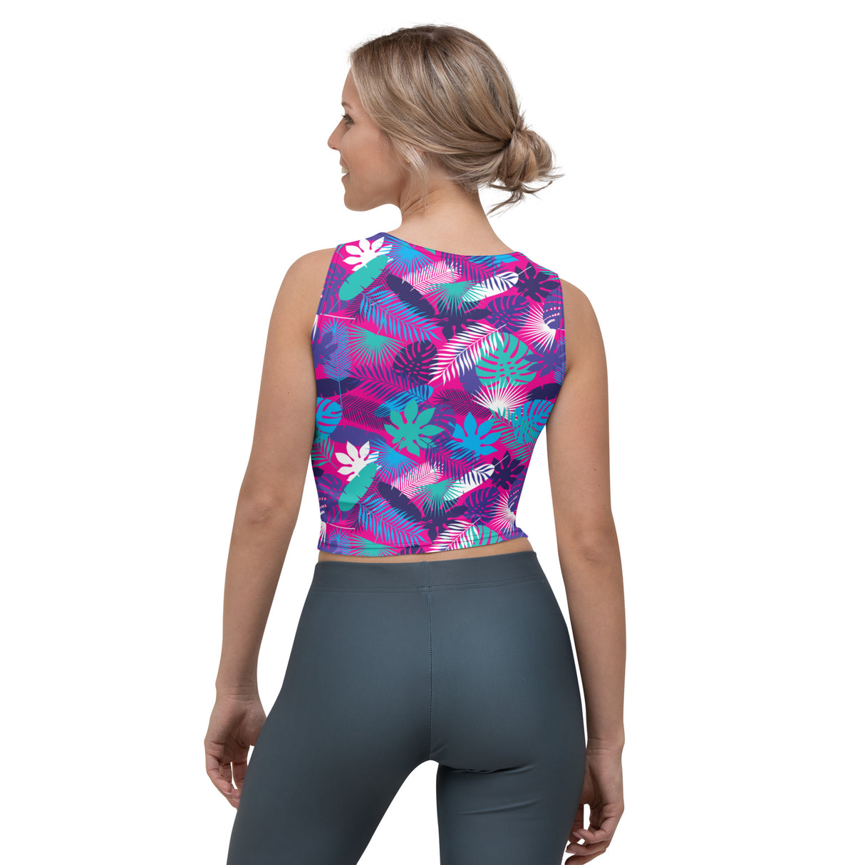 Look fabulous in an all-over printed, body-hugging crop top.
