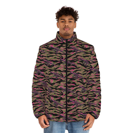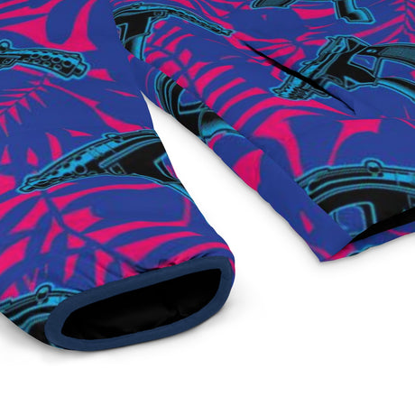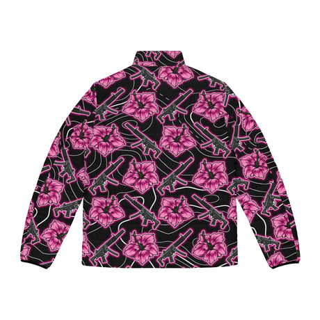 Precio normal $75.00 USDPrecio unitario /AgotadoChaqueta acolchada negra neón Hibiscus de alta capacidad para hombre de Rad Palm