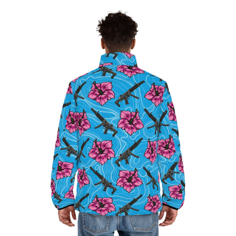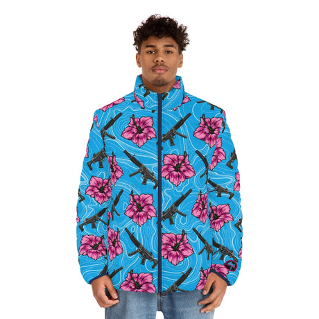 Precio normal $80.00 USDPrecio unitario /AgotadoChaqueta acolchada azul hibisco de alta capacidad para hombre de Rad Palm