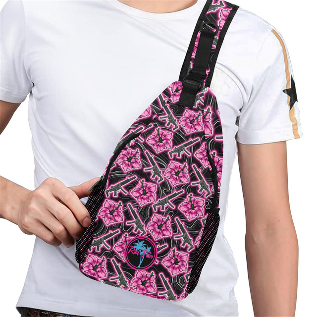 High Capacity Hibiscus Black Neon Sling Bag