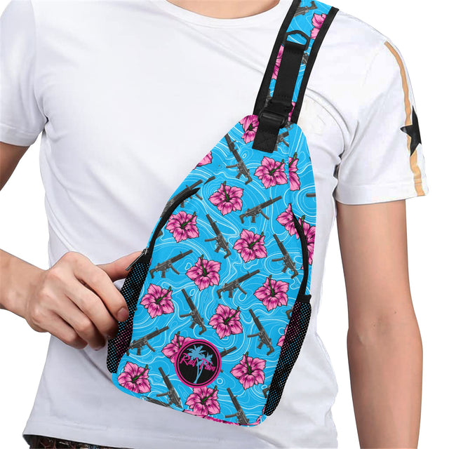 High Capacity Hibiscus Blue Sling Bag